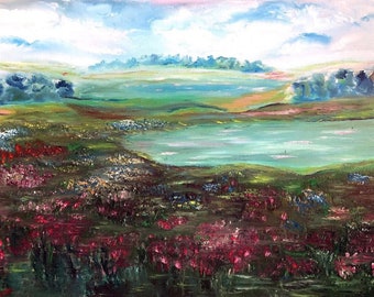 Acryl Gemalde Abstrakte Landschaft Mit Rotem Himmel Handgemalt